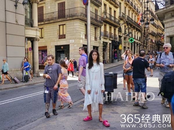 之前曝光的路透图,瘦弱的允儿穿着破烂的白裙子和拖鞋,蓬头垢面地站在巴塞罗那的街头。 (来源:海报时尚网)