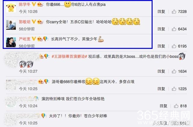 粉丝们在微博下的留言,对源宝赞不绝口,而且《爵迹》的主演陈学冬与导演小四郭敬明也在微博下对源宝进行调侃式的赞美。