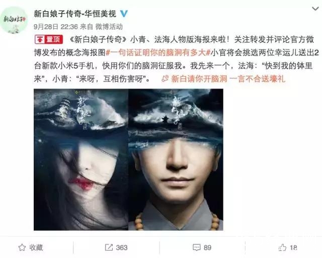 只露半张脸还高度p图的“脑洞式”海报让观众猜谁来饰演小青和法海。看底下的评论和转发数量好像大家对于这剧关注度还不是很高。