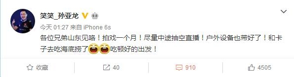 他们要去山东拍戏!