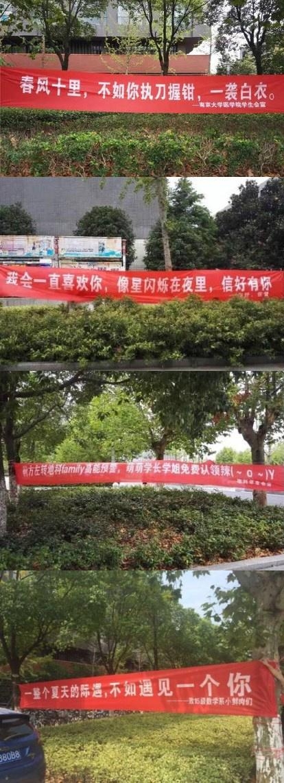 咱们这儿也有啊,比如9月开学时南京的大学,学长学姐拉出迎新横幅,如沐春风。