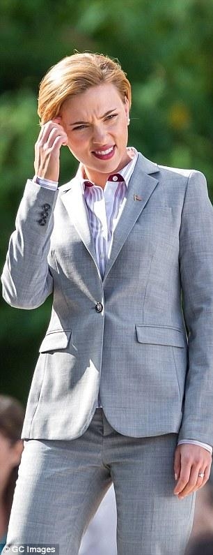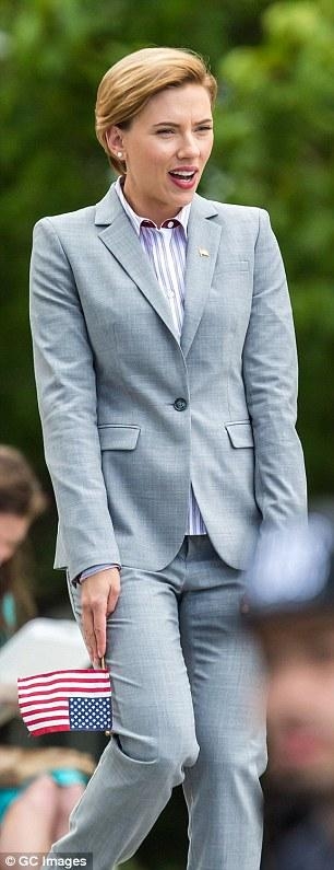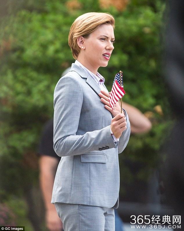 新的喜剧电影《Rock That Body》在纽约开拍,媒体就直击斯嘉丽穿上一套看起来像是专业政治人物的灰色西装,手摇着小小的美国国旗,看起来相当新鲜。