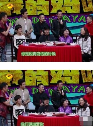 黄晓明上节目宣传,自称只有说青岛话的时候大家才喜欢,何老师马上接腔“你是说青岛话的时候,我们更加爱你”。