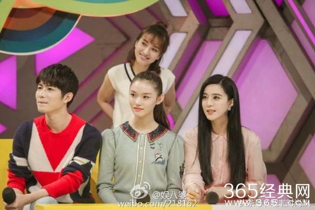 爵迹剧组参加快乐大本营的照片,虽然范冰冰坐在边上,但是女神一头黑发如瀑,温婉大方的样子,让人一眼只能看到她。