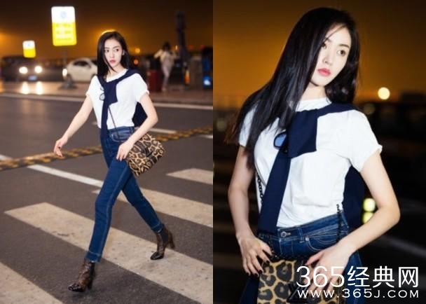 反观张天爱就白Tee牛仔裤,胜在青春无限…