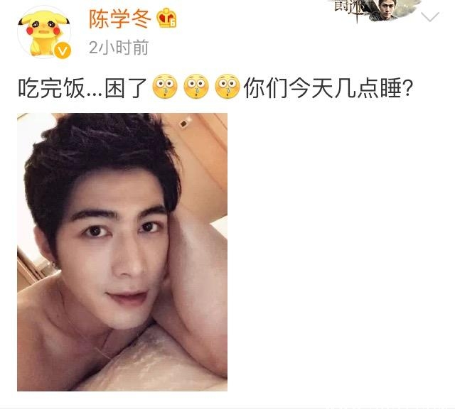10月2日,陈学冬更是晒出自己在酒店床上的照片,裸着上身的他看起来格外的迷人。观众为黄渤贡献了70亿票房,却只投6票给他,输给冯绍峰,心疼