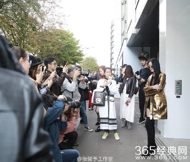 @MASHAMA中国:张馨予身着MASHAMA FW16金属镜面反射皮革外套现身MASHAMA SS17巴黎大秀现场,风一样的女神!感谢到场支持