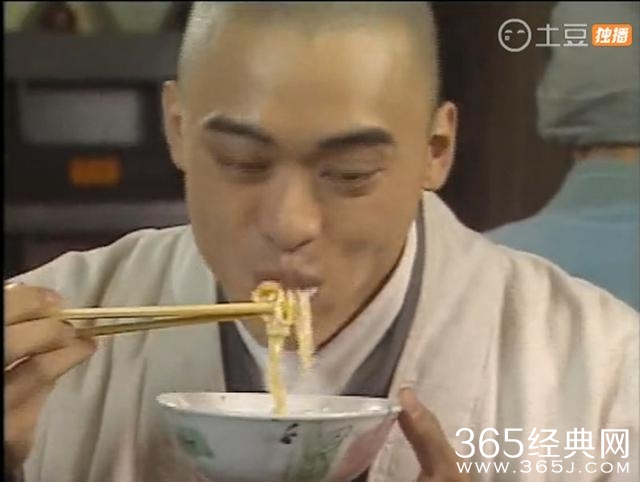 《天龙八部》里的阿紫比较爱捉弄人,于是在虚竹的素面里偷偷藏了鸡肉↓