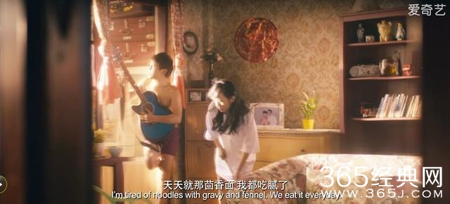 一个发生在《爱情呼叫转移》里,徐峥扮演的徐朗厌倦了自己的婚姻,因为老婆在家永远穿着紫色的衣服、一边看着无聊的电视剧一边做着每周三、四次的炸酱面。
