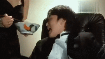 而且周星驰还设计了一个把面条当胡子捋的小动作,特别直观地展现出了阿星当时的自大狂妄↓