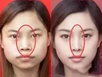 没山根、鼻梁宽,鼻翼大,鼻孔外露