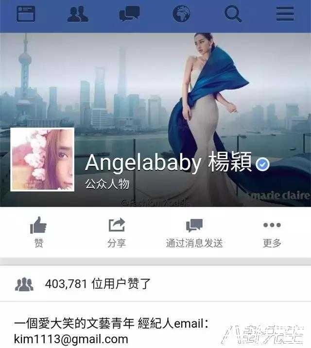 Angelababy,粉丝40万,是范爷的2倍,不过也被成龙大哥碾压了▼