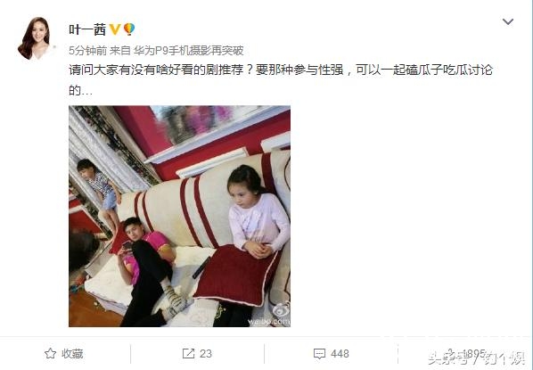 今天,田亮的妻子叶一茜在微博中求助各位网友推荐剧。