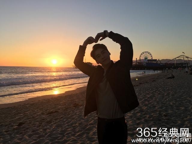 最有创意的要数李易峰,背靠朝阳双手比心,照片爱意满满。