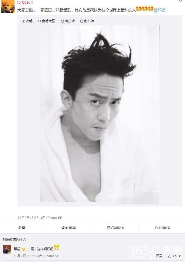 10月2日,孙俪在微博晒出邓超的浴袍照,而且罕见地公开肯定老公是“世界上最帅的人。”马蓉终于承认转移财产真相,网友一首打油歌黑的漂亮