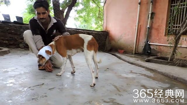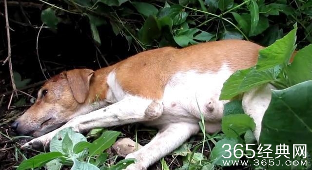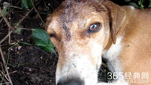 这个狗狗是一位狗妈妈,而且它刚刚生完小狗狗,但是周围都没有发现它的宝宝,狗妈妈头上的血腥味引来了不少的苍蝇,也引来了该男子的注意,