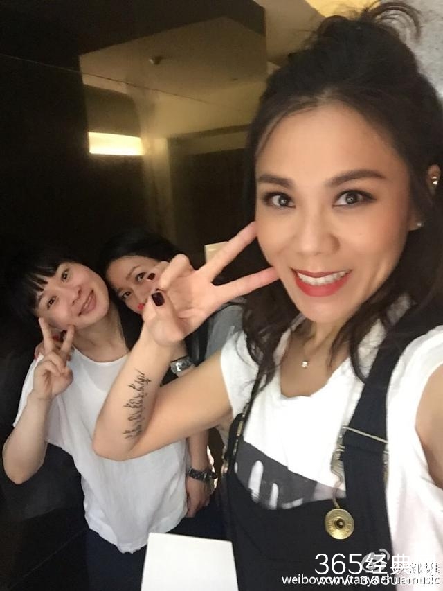 3、蔡健雅玩自拍,后面两位美女抢镜,原来角度距离不同拍出来的蔡健雅显的脸好大!