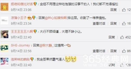 此微博底下一片评论:“金姐情商高!”“大行不顾细谨,大礼不辞小让。”