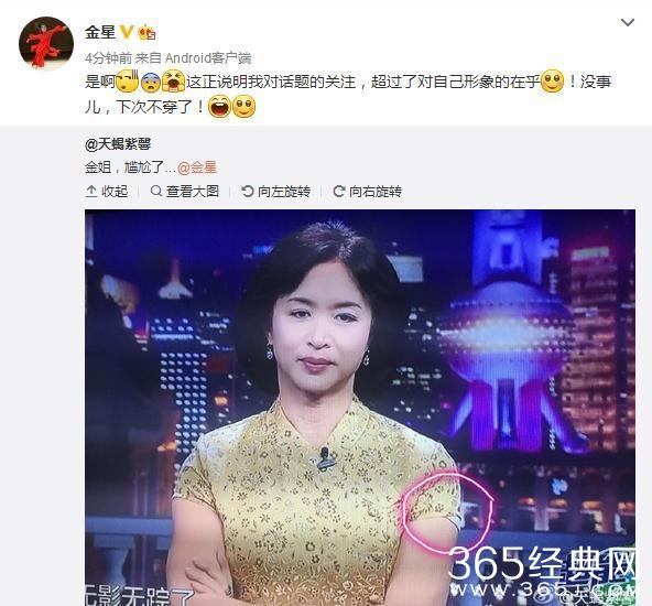 金星居然发现了这条微博,大气回应:这说明我对话题关注的程度超过了我对自己形象的在乎!没事儿,下次不穿了!