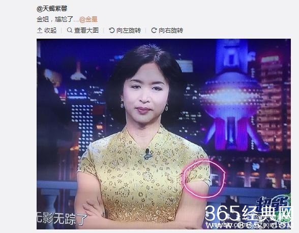 就在前一期的节目中,金星在主持的时候肩带滑落,被眼尖的网友发现。