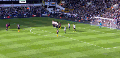 第21分钟,热刺获得禁区前沿位置极佳的任意球,埃里克森主罚直接攻门差之毫厘。