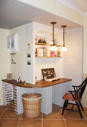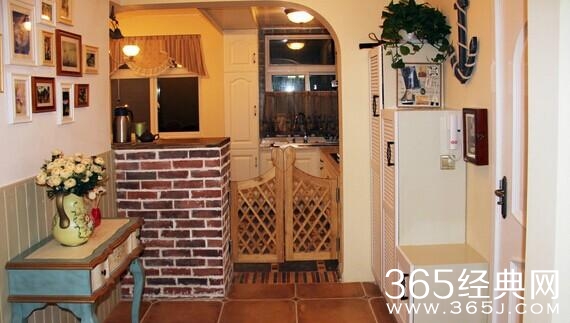 玄关的柜子是百叶窗式的,很好看这个图可以看见厨房的吧台和篱笆式的小门,有情调I噢