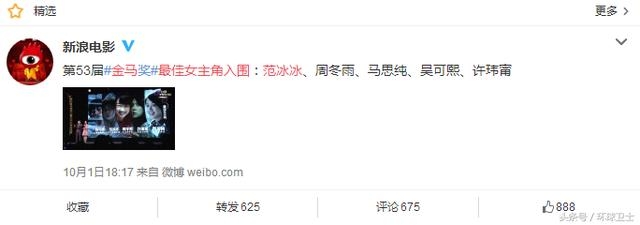 也对,现在范冰冰可是拿奖拿不停啊,还提名了金马奖最佳女演员,这可够范冰冰粉丝吹的。