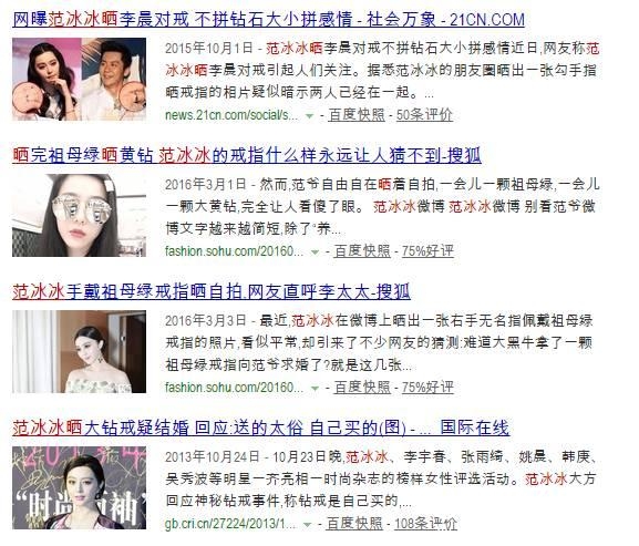 不过范冰冰每年都要“疑似晒婚戒”好多次,不知道这次是宣传时期的烟雾弹还是真要结婚了。 (还记得去年刚晒恋情是为了电视剧《武媚娘》,范爷很会用恋情做“调味剂”,因为粉丝和群众对明星的追求都带着“幻想”,幻想自己会成为像范冰冰那样的女人,或者又幻想自己能有李晨这样的老实巴交的男友。)