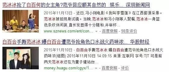 还有网上传言《我不是潘金莲》的女主角是范冰冰抢了白百合的,这种女明星八卦撕逼新闻最吸引眼球。