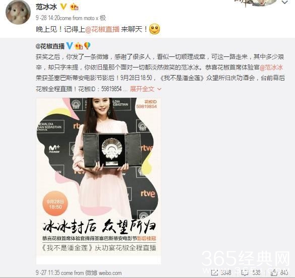 圣塞巴斯蒂安电影节顺利“摘后”是对范冰冰演技的最新认证和宣传,相信这个西班牙影后也会让一部分观众认可范冰冰的演技。(加上之前的东京国际电影节影后,这次西班牙也算是A类电影节,粉丝会加大马力宣传,而一部分路人会增加好感度。当然争议依然还会有,比如网友们会扒出圣塞巴斯蒂安电影节的含金量,毕竟和欧洲三大还是不能比的。但是这里的热议对后续传播是绝对有利的......)