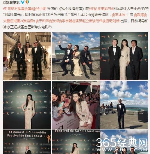 9月中旬冯小刚率领《我不是潘金莲》剧组征战“多伦多电影节”和“圣塞巴斯蒂安电影节”两个国际电影节。 (两个电影节呢,算是欧洲三大电影节之外影响力还不错的平台,国际舞台就是争取更多全球焦点,国际光芒可以让粉丝有了话题可以刷,让路人也可以有热闹看)