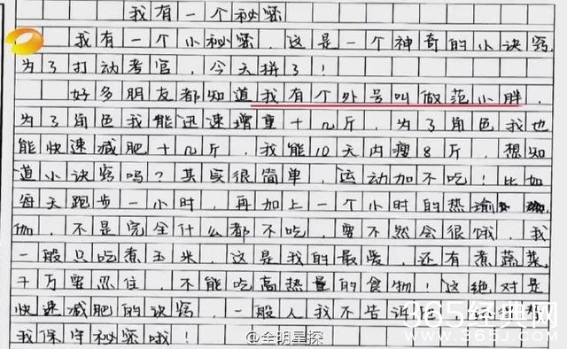 作文中范冰冰提到自己会为了角色增肥瘦身,最快能在10天内瘦8斤,还真是蛮厉害的