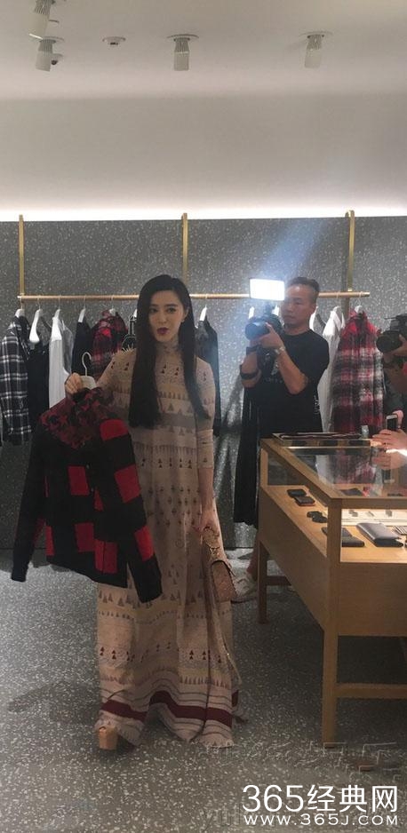 5、范冰冰在衣服店,穿长裙选衣服,然而伸出的一只脚鞋底好高!