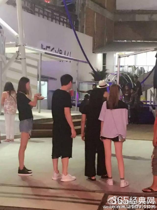 照中王思聪穿黑色短袖和黑色短裤,还有男的女的一起似乎在谋划商量什么。