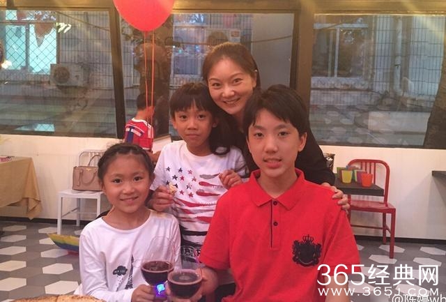 陈婷和三个孩子照片,一脸幸福模样。