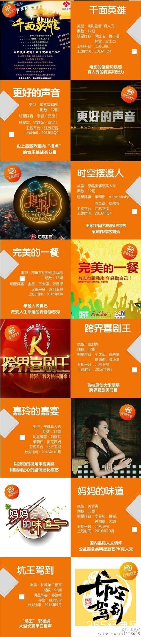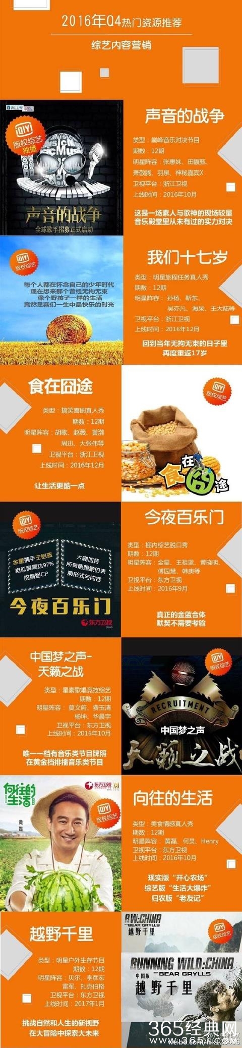 2016年Q4部分热门综艺 包括张惠妹、Hebe、萧敬腾、羽泉等《声音的战争》;孙杨、靳东、吴亦凡等《我们的十七岁》;胡歌、黄渤、大张伟等《食在囧途》;黄晓明、韩庚、傅园慧等《今夜百乐门》;莫文蔚、华晨宇等《中国梦之声》;梁朝伟、鹿晗、陈奕迅、Angelababy等《时空摆渡人》...你最期待哪一部呢?2016年Q4部分热门综艺 包括张惠妹、Hebe、萧敬腾、羽泉等《声音的战争》;孙杨、靳东、吴亦凡等《我们的十七岁》;胡歌、黄渤、大张伟等《食在囧途》;黄晓明、韩庚、傅园慧等《今夜百乐门》;莫文蔚、华晨宇等《中国梦之声》;梁朝伟、鹿晗、陈奕迅、Angelababy等《时空摆渡人》...你最期待哪一部呢?