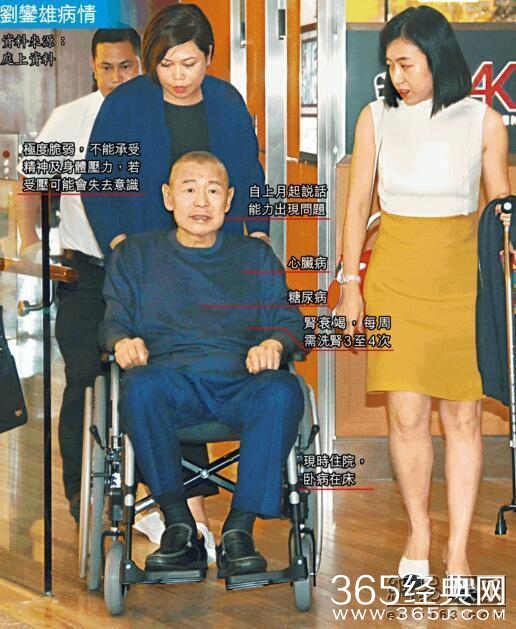 网易娱乐10月4日报道 据香港媒体报道,华人置业大股东刘銮雄近期被传媒拍到坐轮椅出入兼暴瘦,一直惹外间关注其健康状况。他原定昨就某港媒于2013年报道他涉行贿澳门运输工务司前司长欧文龙时,未经他同意披露其医疗报告一案作供,但他因病没有到庭,由律师代为呈交医生报告,首度披露他病情,患肾衰竭、心脏病和糖尿病等多种病症,需住院卧床,自上月起甚至连说话亦出现问题,在可见将来亦难出庭。裁判官将案押后到明天,待控方考虑是否继续检控。