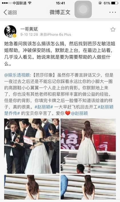还有最后合影的时候,赵丽颖默默的站到后排一个角落里面,这是一个多好的宣传自己的机会,赵丽颖就这么放弃了。再看看站在最亮眼处的那几个女明星,刘亦菲,杨幂,孙俪哪个捐了钱?