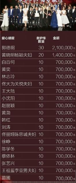 这是当天晚上各为明星捐助救护车的数量,郭德纲捐助了30辆,黄晓明夫妇捐助20辆,还有白百何等明星也都捐助了10辆。今天小编要给大家说的是赵丽颖,这位农村出身的姑娘。