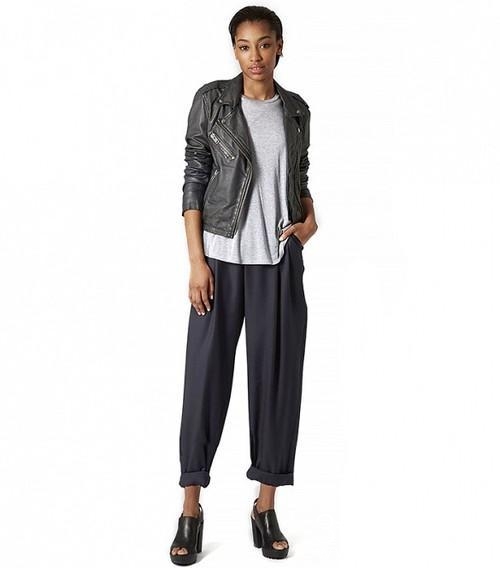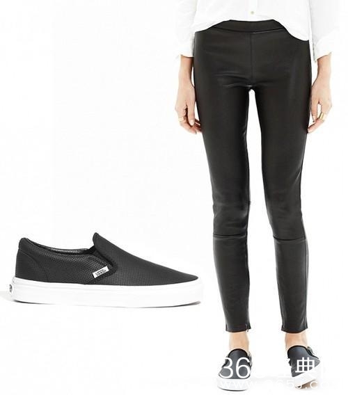 Vans经典打孔真皮懒汉鞋(左),Madewell 皮裤