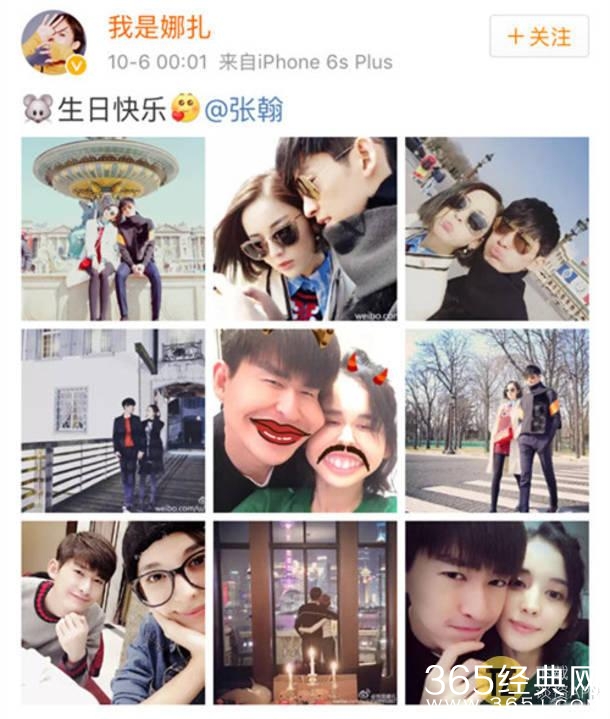 写着,小老鼠,生日快乐,并送出了一个飞吻,不过,这个不是重点,重点是后面的九宫格,全是古力娜扎和张翰的甜蜜恩爱照片。
