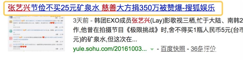 此前,搜狐娱乐更是爆出“张艺兴节俭不买25元矿泉水 慈善大方捐350万”