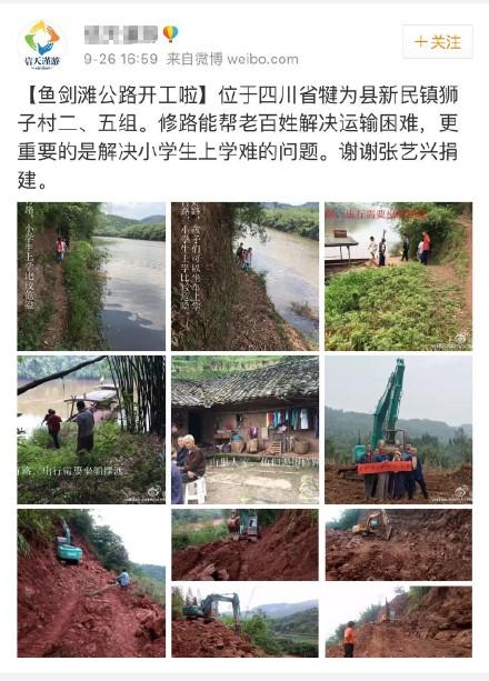 此前也有网友爆料,为四川省犍为县新民镇狮子村二、五组,张艺兴低调捐献修筑“鱼剑滩公路”