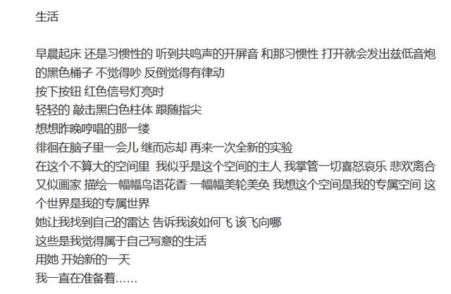 这一段有没有一种散文的感觉?习惯性的起床和生活被艺兴描写得这么轻松写意、惬意自在,我们还有什么理由对自己的生活感到不满呢?