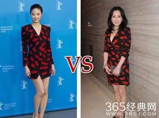 桂纶镁和刘嘉玲穿着同样的黑色红花的连衣裙,虽然桂纶镁比较年轻,但是身材丰满的刘嘉玲完全的把服装的韵味穿出来。可以说刘嘉玲更适合本件衣服。