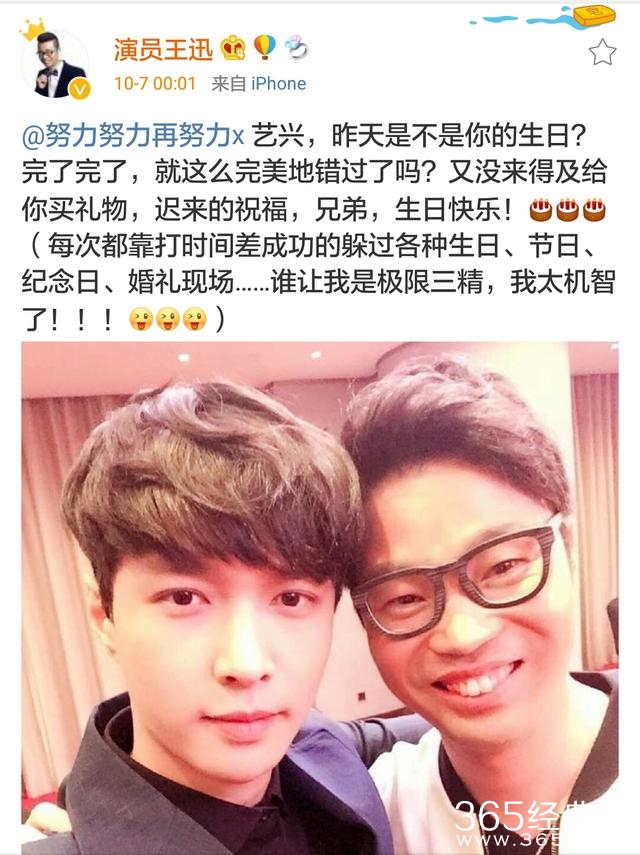 王迅第一个送送祝福,并贴与艺兴的合照,然而“大意”的松鼠,却闹了乌龙,以为自己成功记错了时间,为躲过生日礼物找到了好的借口!还自夸自己是三精,却惨被网友提醒根本没错,别装啦!