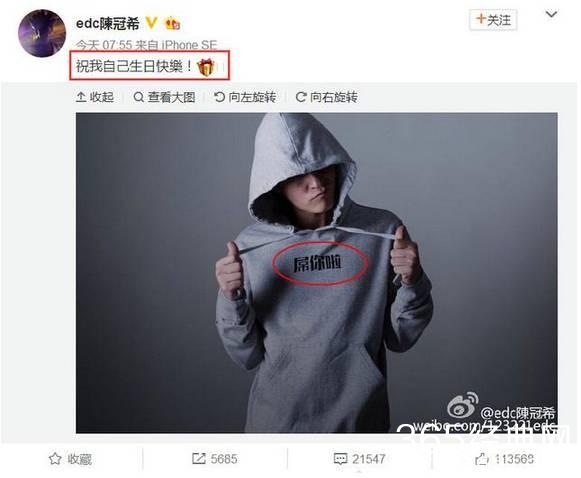 今天作为寿星的陈冠希也发微博祝自己生日快乐!哈哈