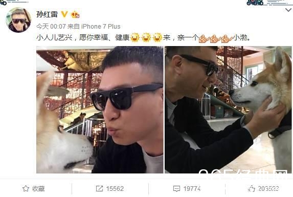 孙红雷也是第一时间送出祝福,不过他没放张艺兴的照片,而是放了和长得像黄渤狗狗的照片,网友评论说不是祝福张艺兴生日吗,怎么亲黄渤去了,是不是你们男人帮在群里打了什么赌,输了?哈哈,自行脑补吧!