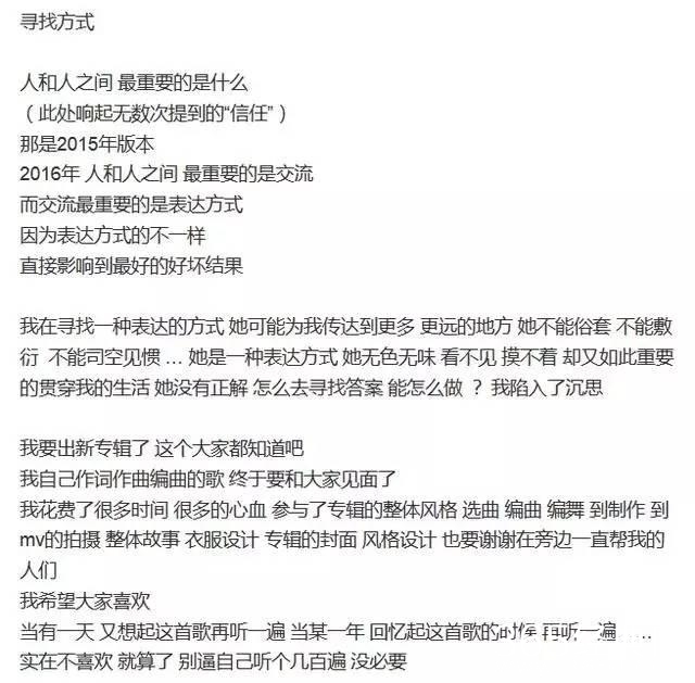 除了生日作文不说,今天中午张艺兴还发布了自己的歌曲mv《what u need》来回馈粉丝。本人也是第一时间去看了,舞蹈不错,歌曲也还好,歌曲里面有点鹿晗的那首《有点意思》的味道,不知道大家有没有这个感觉,希望以后能多出一点歌曲,能有一首让大家能耳熟能详的歌曲,就是旋律比较容易哼的!
