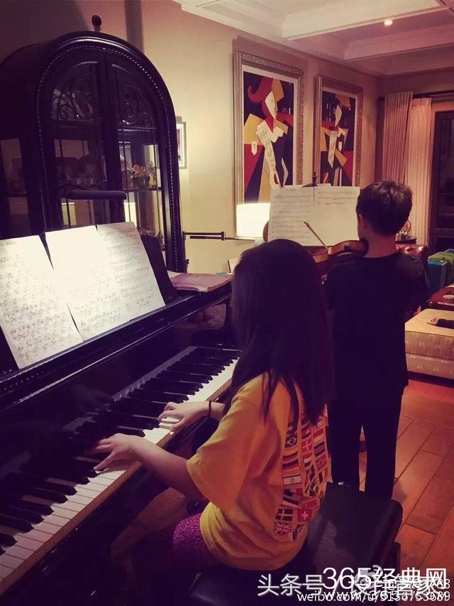 多多谈钢琴的样子很认真~可以看出地板是木地板装修~
